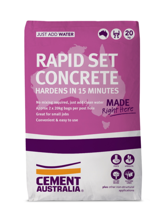 Rapid Set Concrete is specially formulated to harden rapidly, so you can complete a job faster. It is highly suitable for fixing non-load bearing posts, and many other non-structural uses.